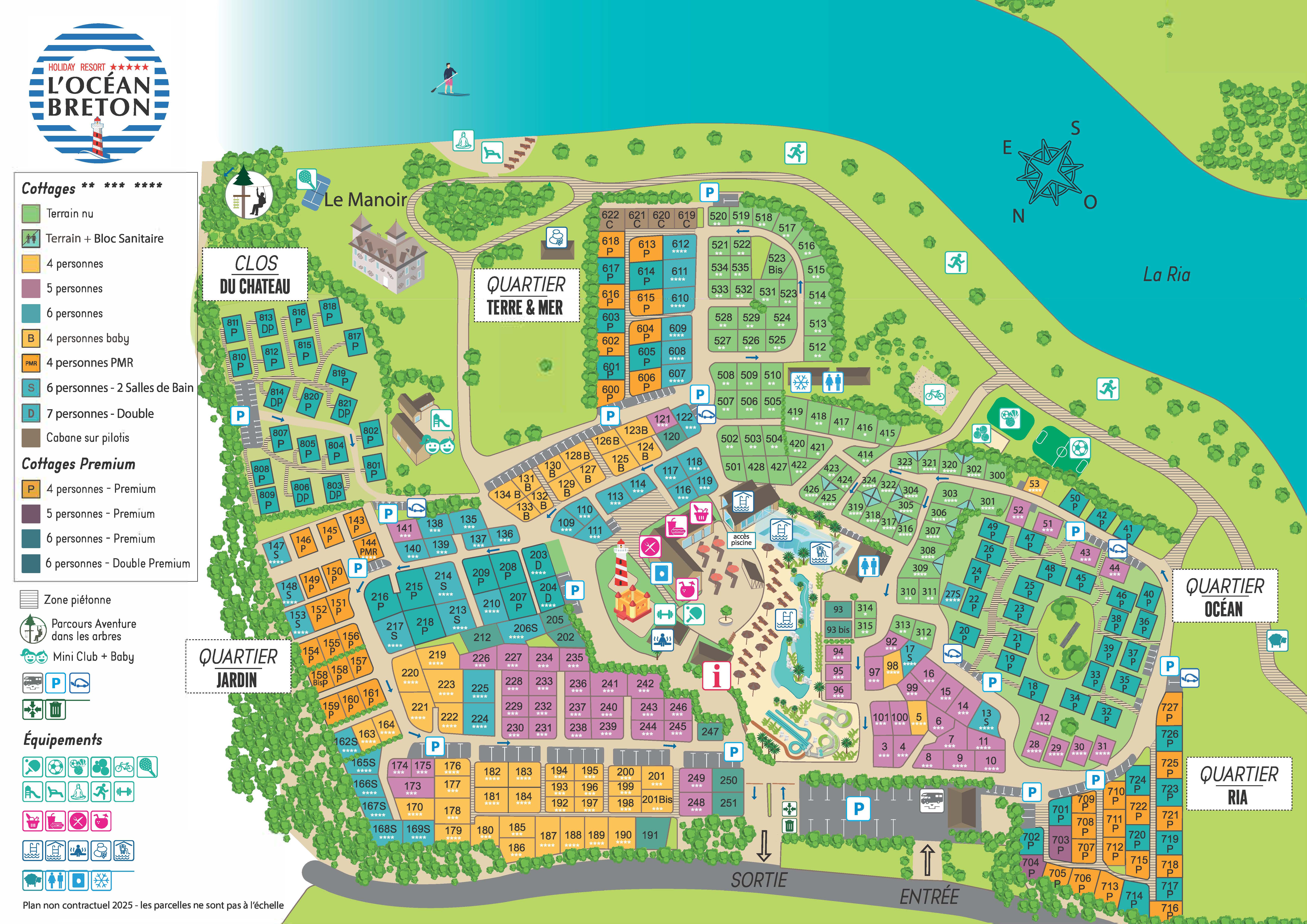 L’Océan Breton is een camping met twee gezichten. Ons meer dan tien hectare grote en groen terrein, heeft in het zuiden het karakter van een buitenhotel aan zee, met oevers aan de uitmonding van de Steir, een honderden meters lange zeearm. Daarom is het bij vloed mogelijk om met een standing paddle of een zeekajak direct vanaf de camping de stranden aan de Atlantische Oceaan te bereiken! In het noorden, aan de kant van het vaste land, bent u welkom in een een harmonieus in de omgeving gebouwd vakantiedorp. In het midden van de camping vindt u vele diensten die u kunt gebruiken, evenals een goed restaurant en 5-sterren faciliteiten!